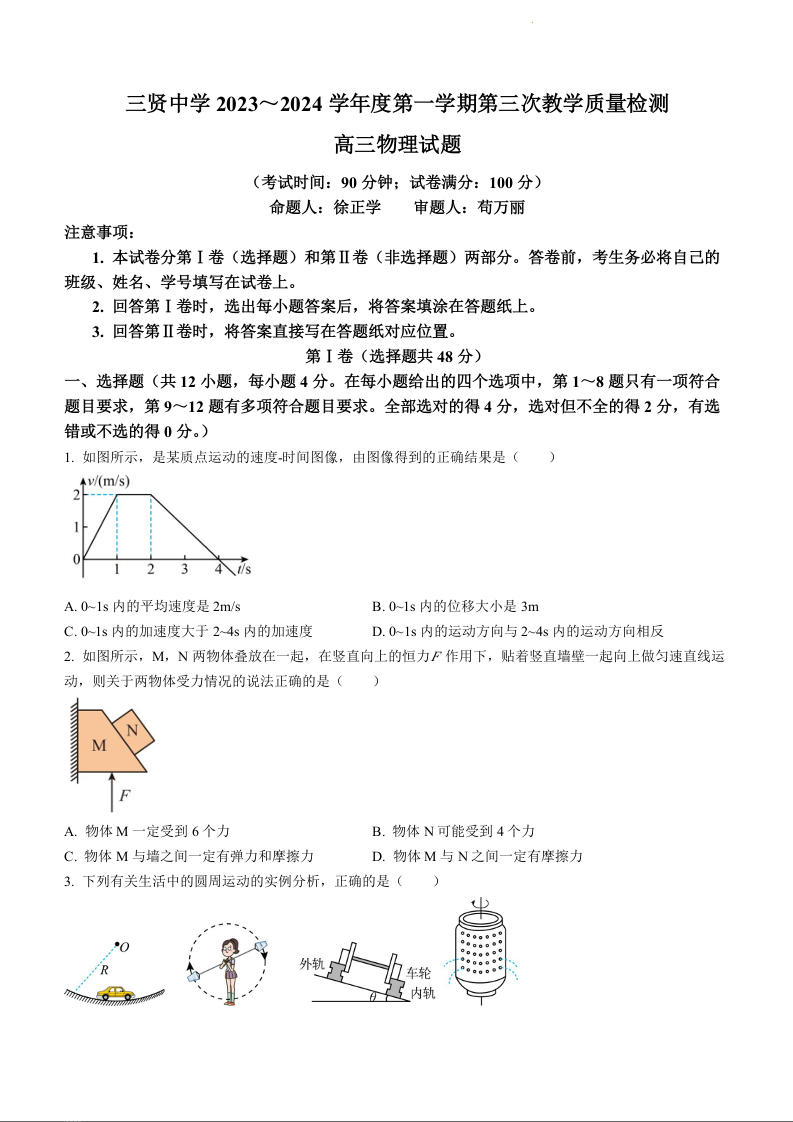 陕西省渭南市三贤中学2023-2024学年高三上学期11月月考物理