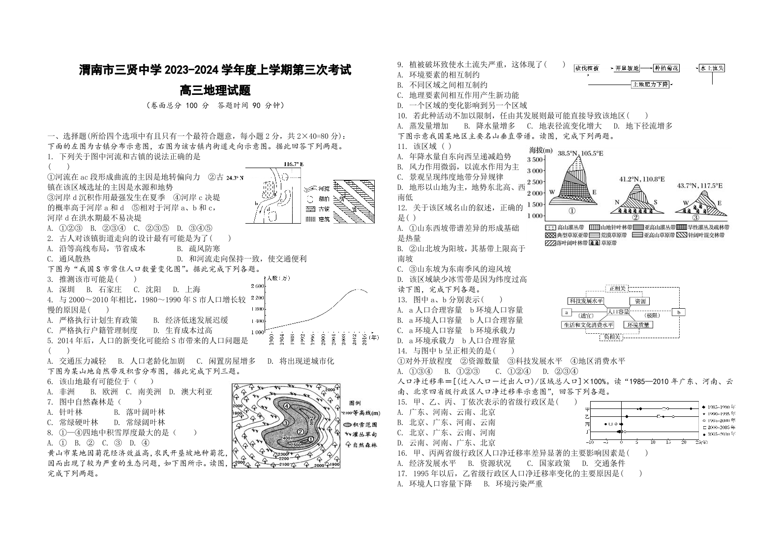 陕西省渭南市三贤中学2023-2024学年高三上学期11月月考地理