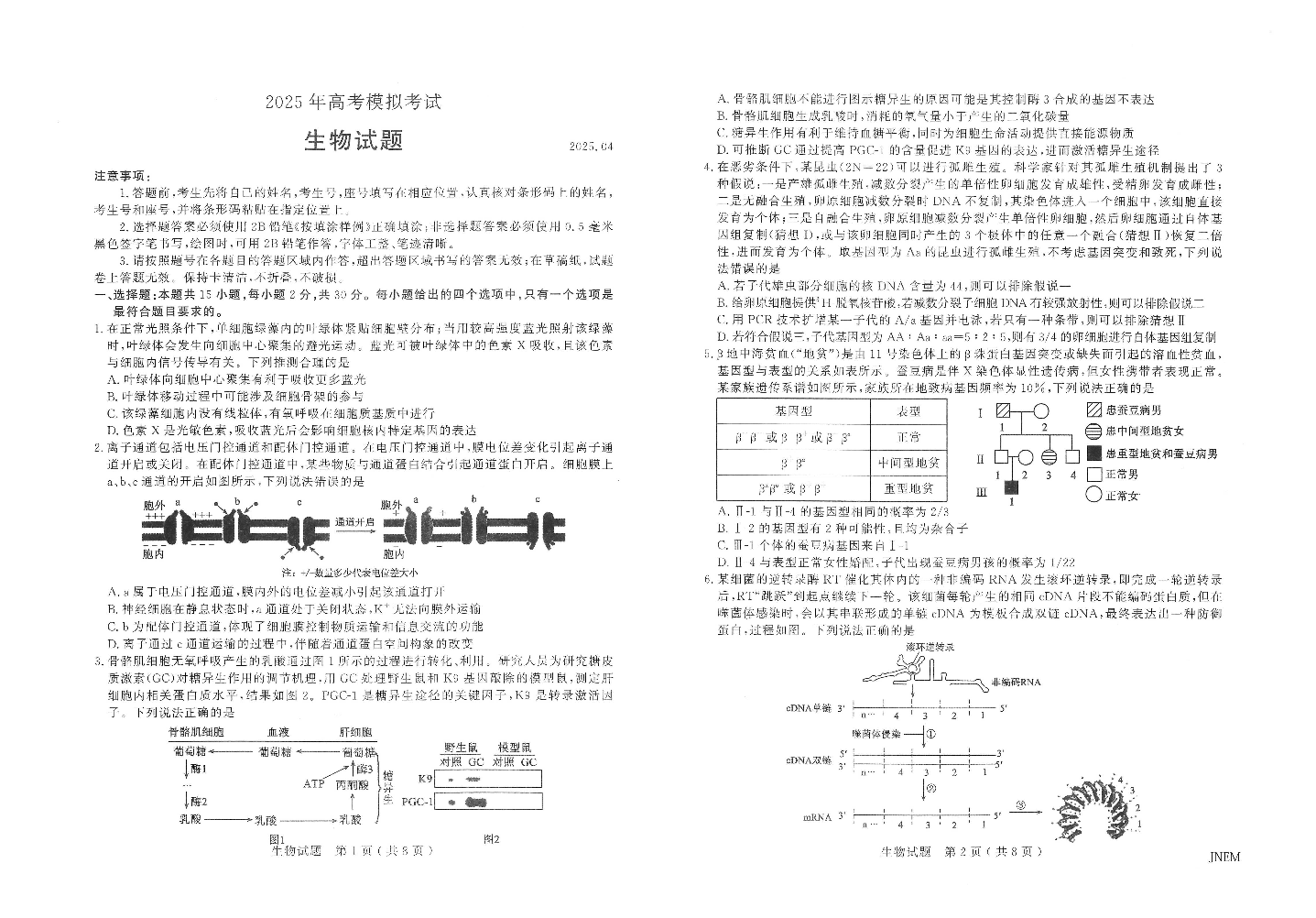 山东省济宁市2024-2025学年下学期4月高三二模统考生物
