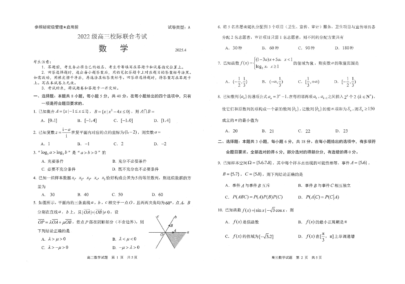 山东省日照市2024-2025学年下学期4月高三二模校际联考数学