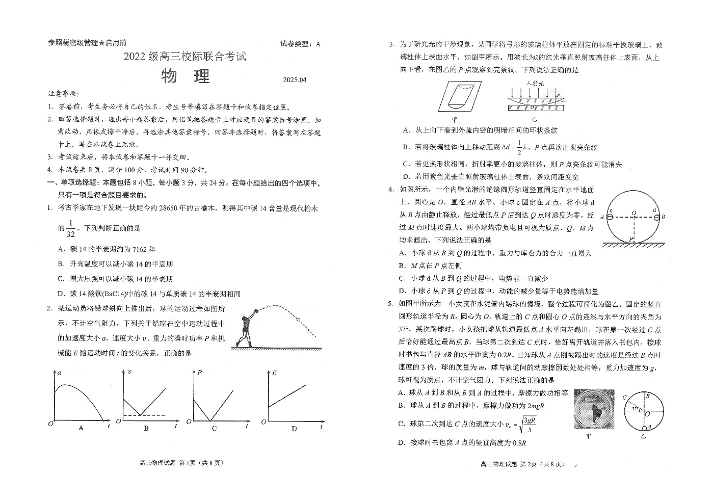 山东省日照市2024-2025学年下学期4月高三二模校际联考物理