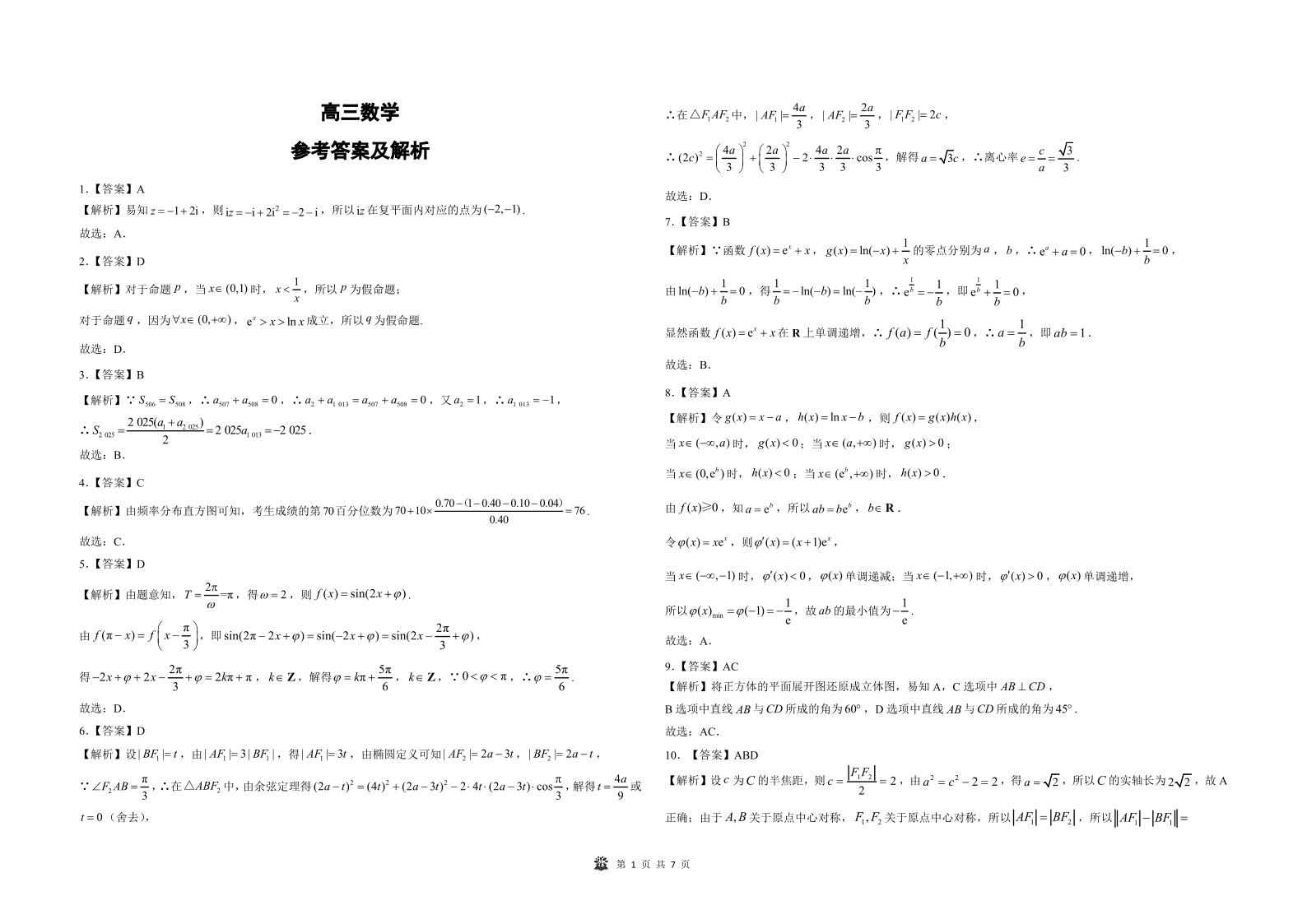 东北三省精准教学2024-2025学年下学期4月高三联考数学答案