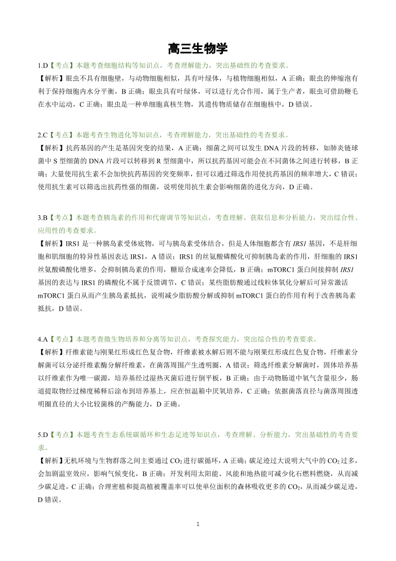 东北三省精准教学2024-2025学年下学期4月高三联考生物答案