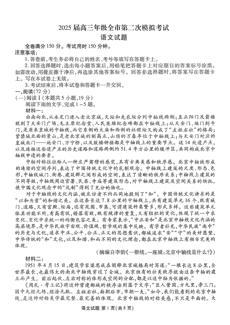 河北省张家口市2025届高三年级全市第二次模拟考试语文