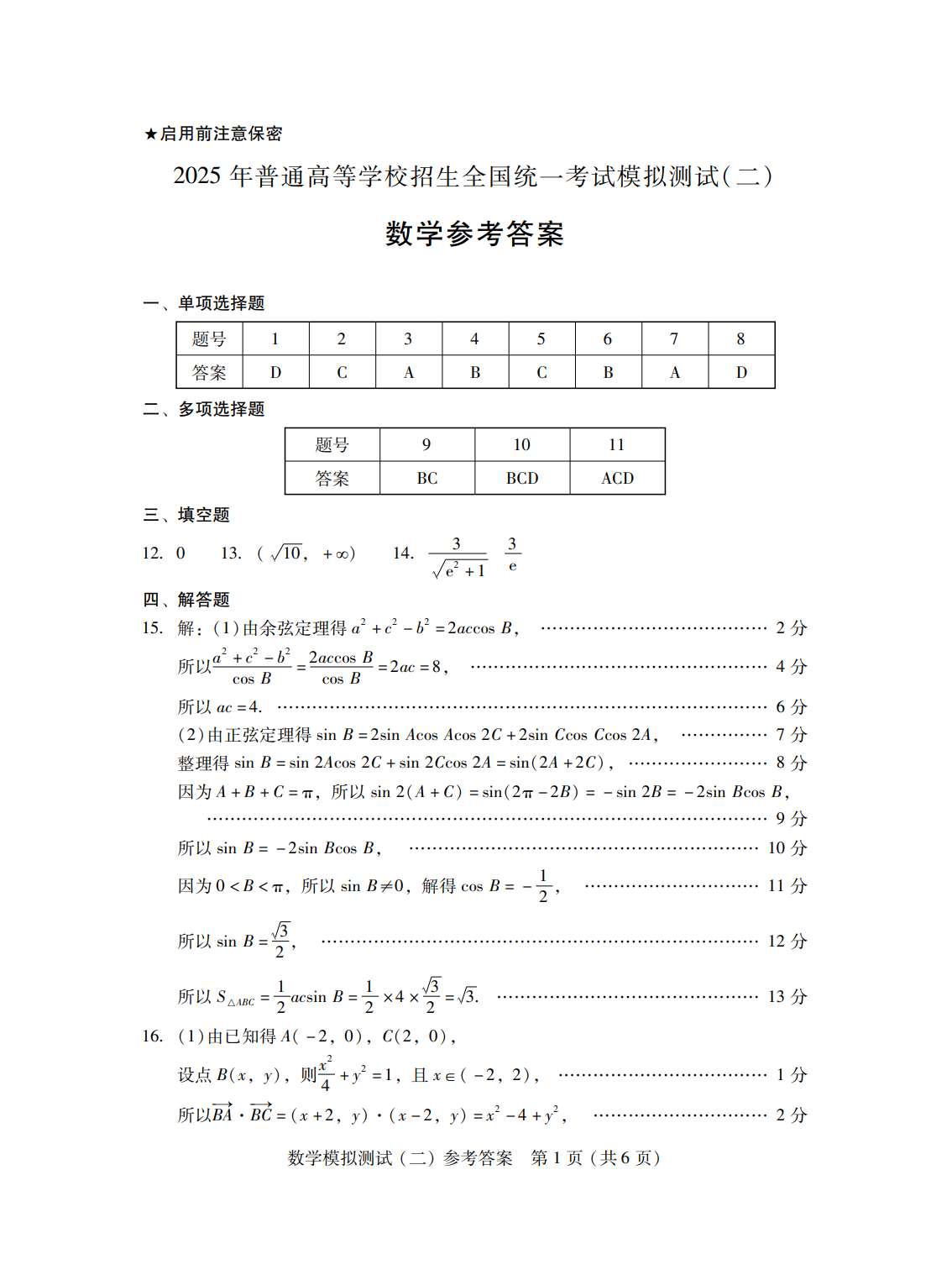 广东省区域高中2025年普通高等学校招生全国统一考试模拟测试(二模)数学答案