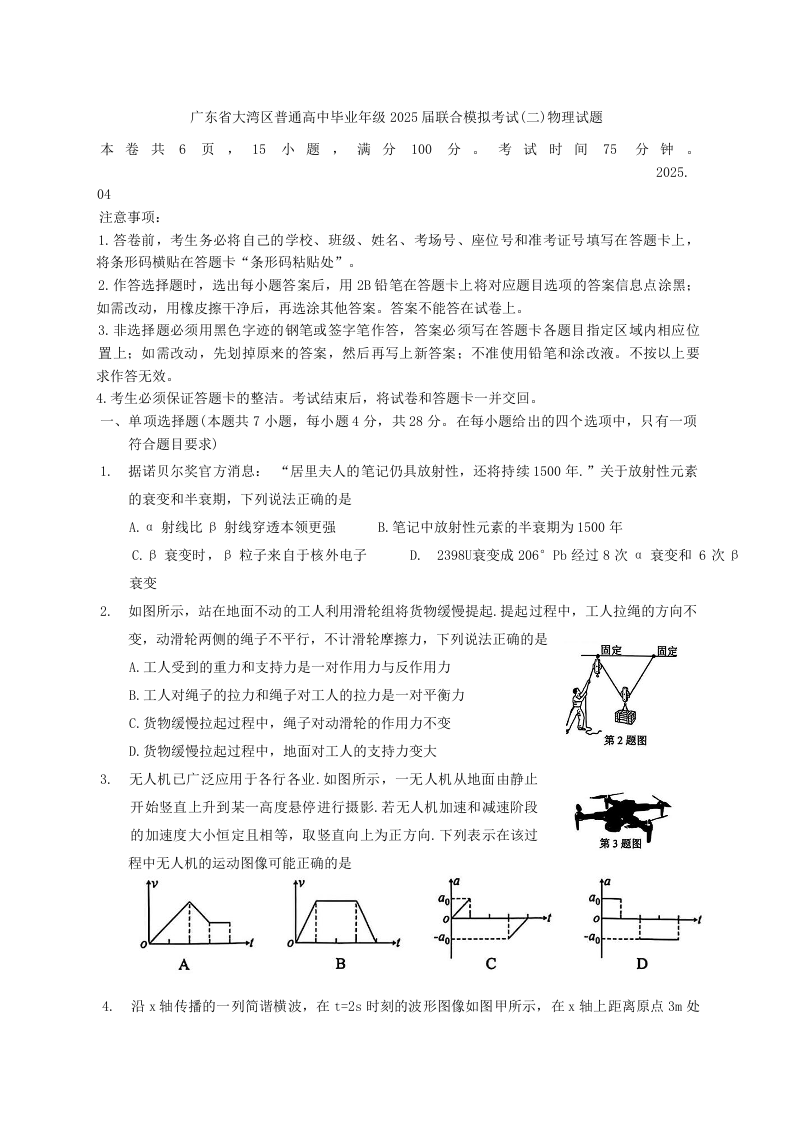 广东省大湾区2025届普通高中毕业年级联合模拟考试(二模)物理+答案