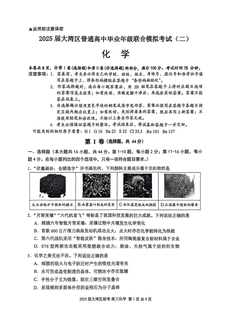 广东省大湾区2025届普通高中毕业年级联合模拟考试(二模)化学+答案