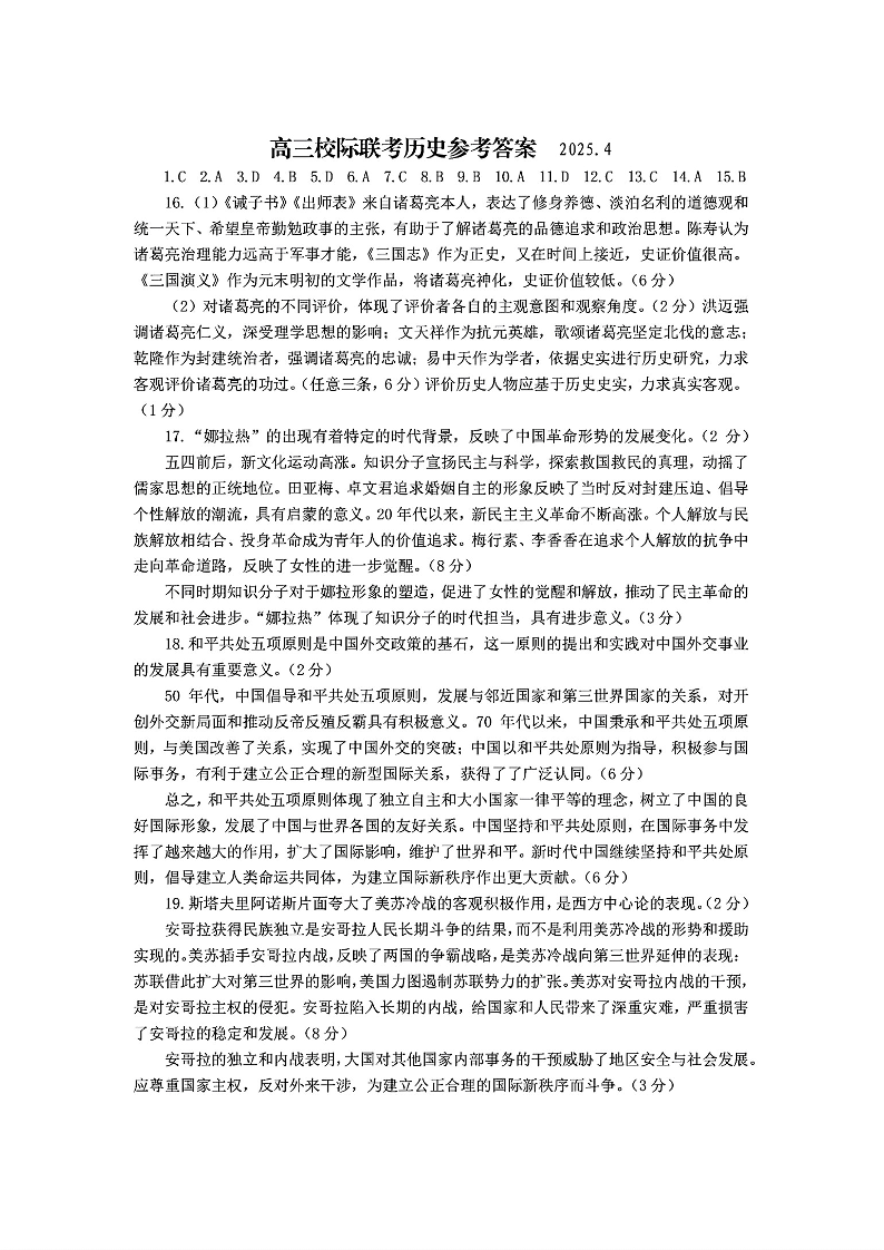 山东省日照市2024-2025学年下学期4月高三二模校际联考历史答案