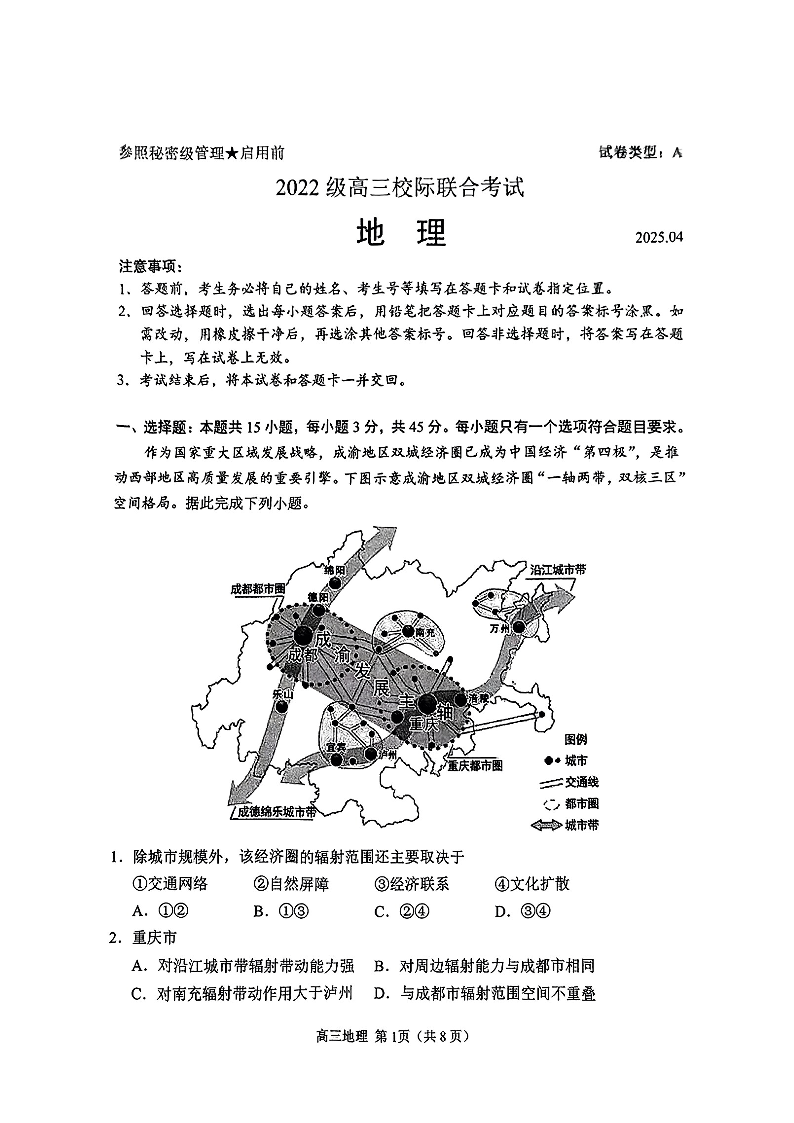 山东省日照市2024-2025学年下学期4月高三二模校际联考地理