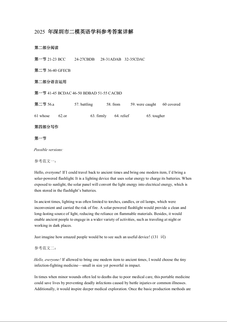 广东省深圳市2024-2025学年高三二模调研考英语答案