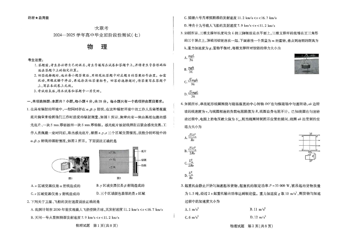 河南省区域高中2024-2025学年下高三阶段性测试(七)物理+答案