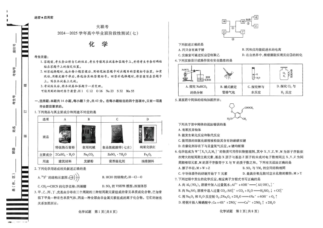 河南省区域高中2024-2025学年下高三阶段性测试(七)化学+答案