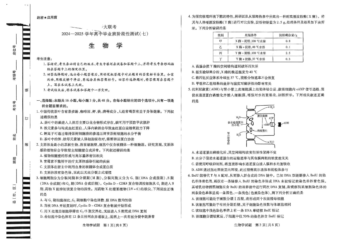河南省区域高中2024-2025学年下高三阶段性测试(七)生物+答案