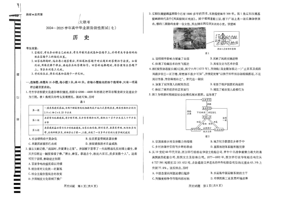 河南省区域高中2024-2025学年下高三阶段性测试(七)历史+答案