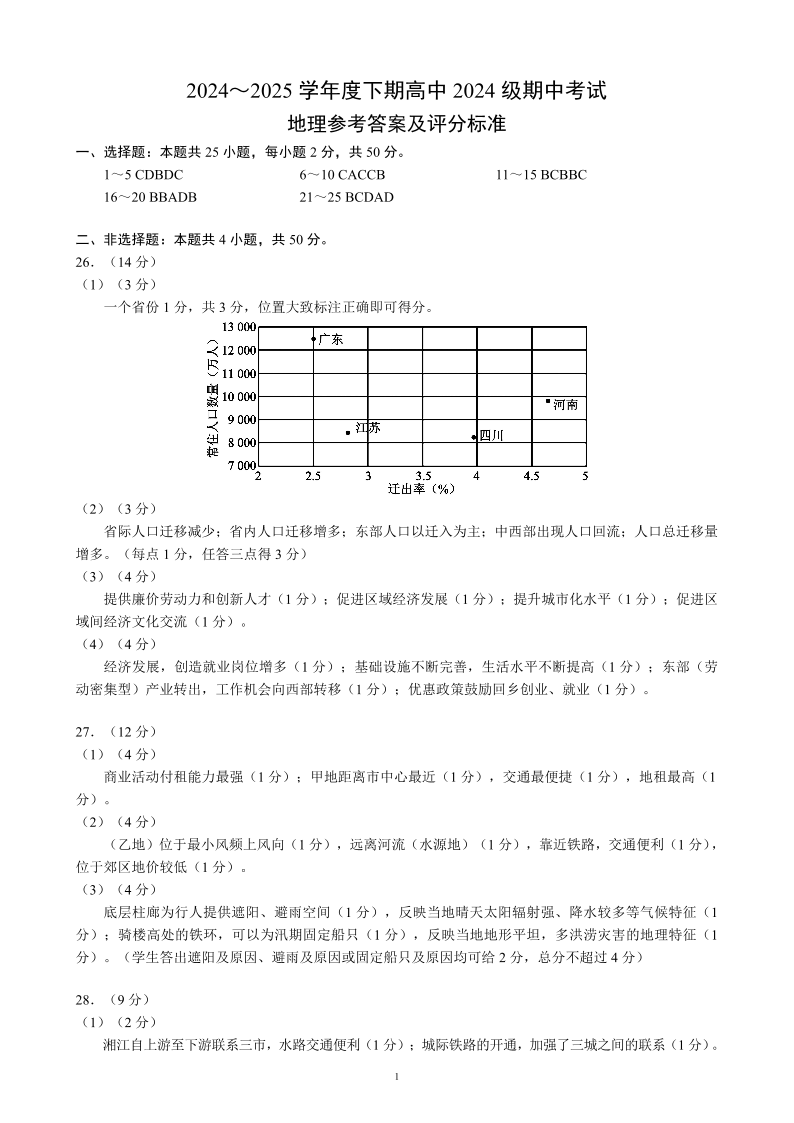 四川省成都市蓉城名校联盟2024-2025学年下学期高一期中考试地理答案