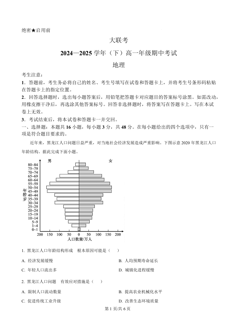 河南省区域2024-2025学年下学期4月高一期中联考地理(原卷版)