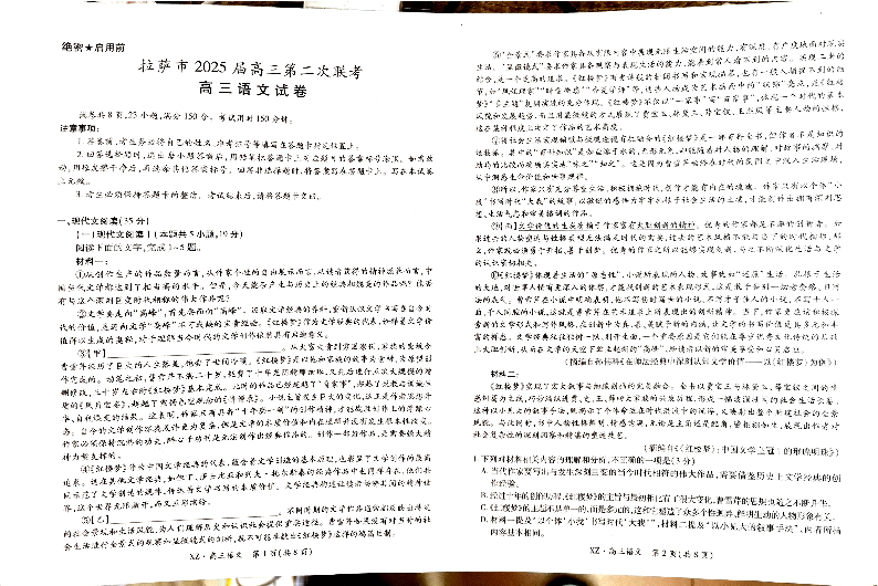 西藏拉萨市2024-2025学年下学期高三第二次模拟语文