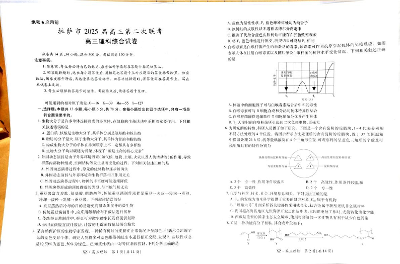 西藏拉萨市2024-2025学年下学期高三第二次模拟理综