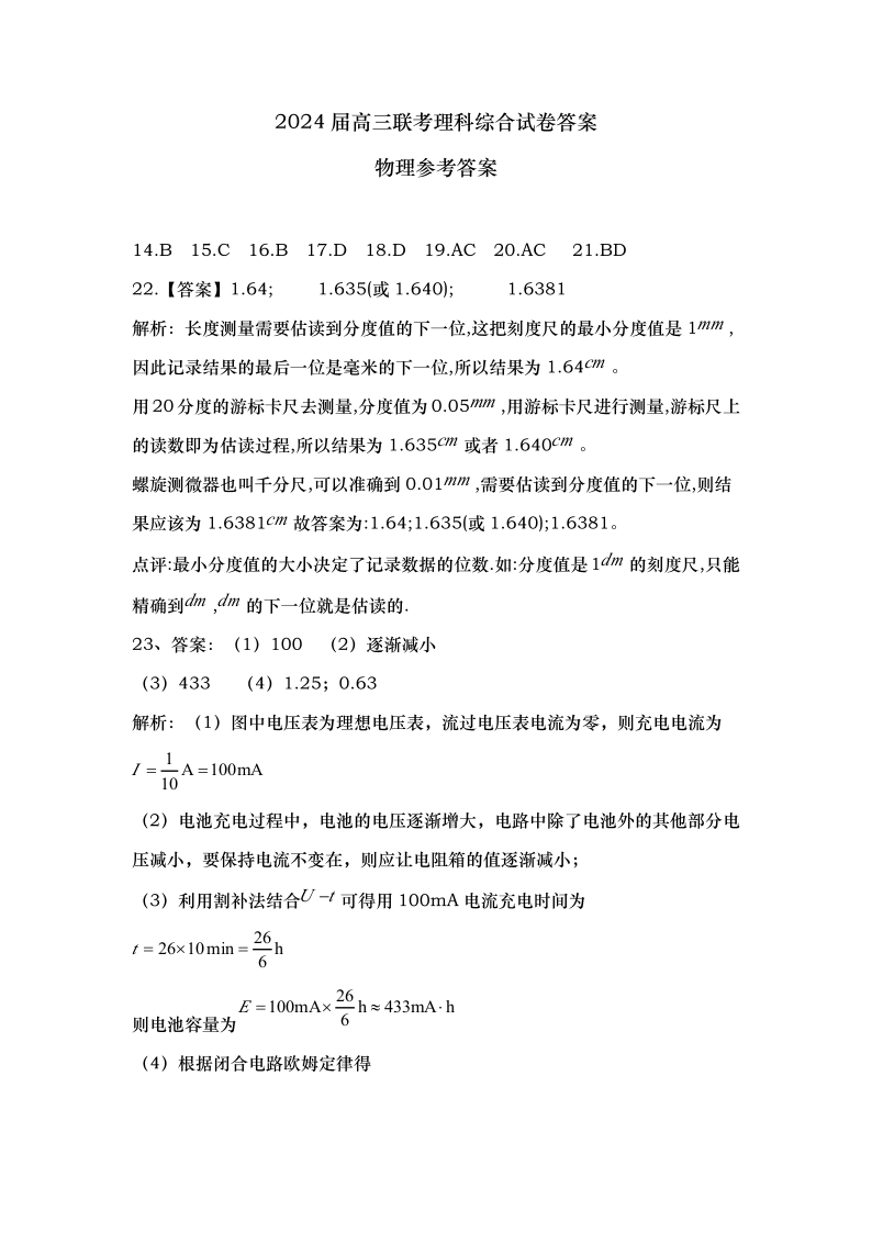 陕西省宝鸡实验高级中学2024届高三上学期12月联考 理综答案
