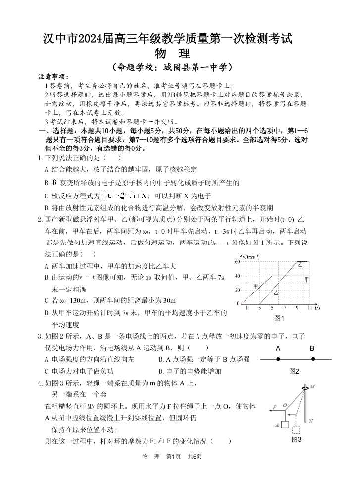 陕西省宝鸡实验高级中学2024届高三上学期12月联考物理