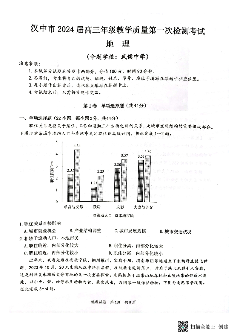 陕西省宝鸡实验高级中学2024届高三上学期12月联考地理