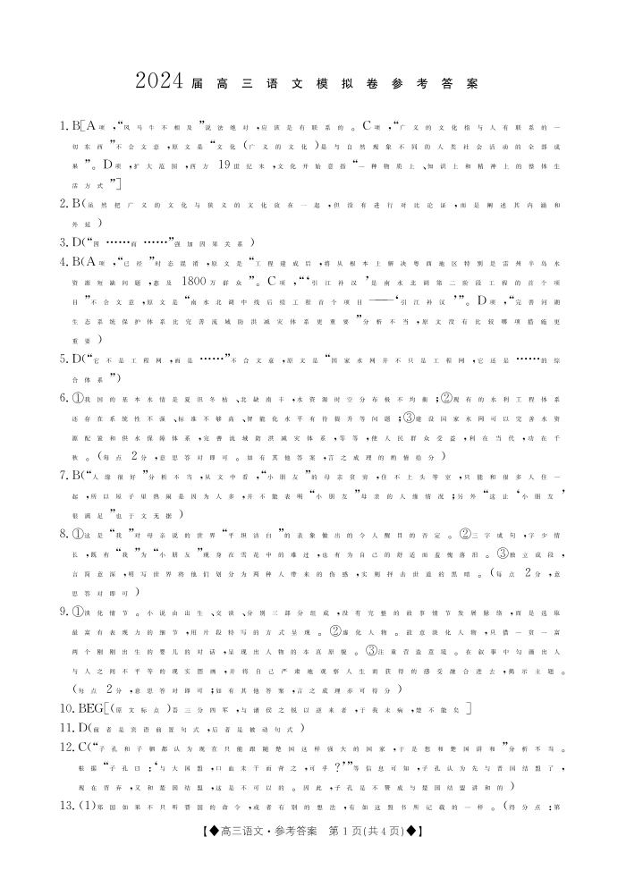 陕西省西安市长安区教育片区2024届高三上学期模拟考试语文答案