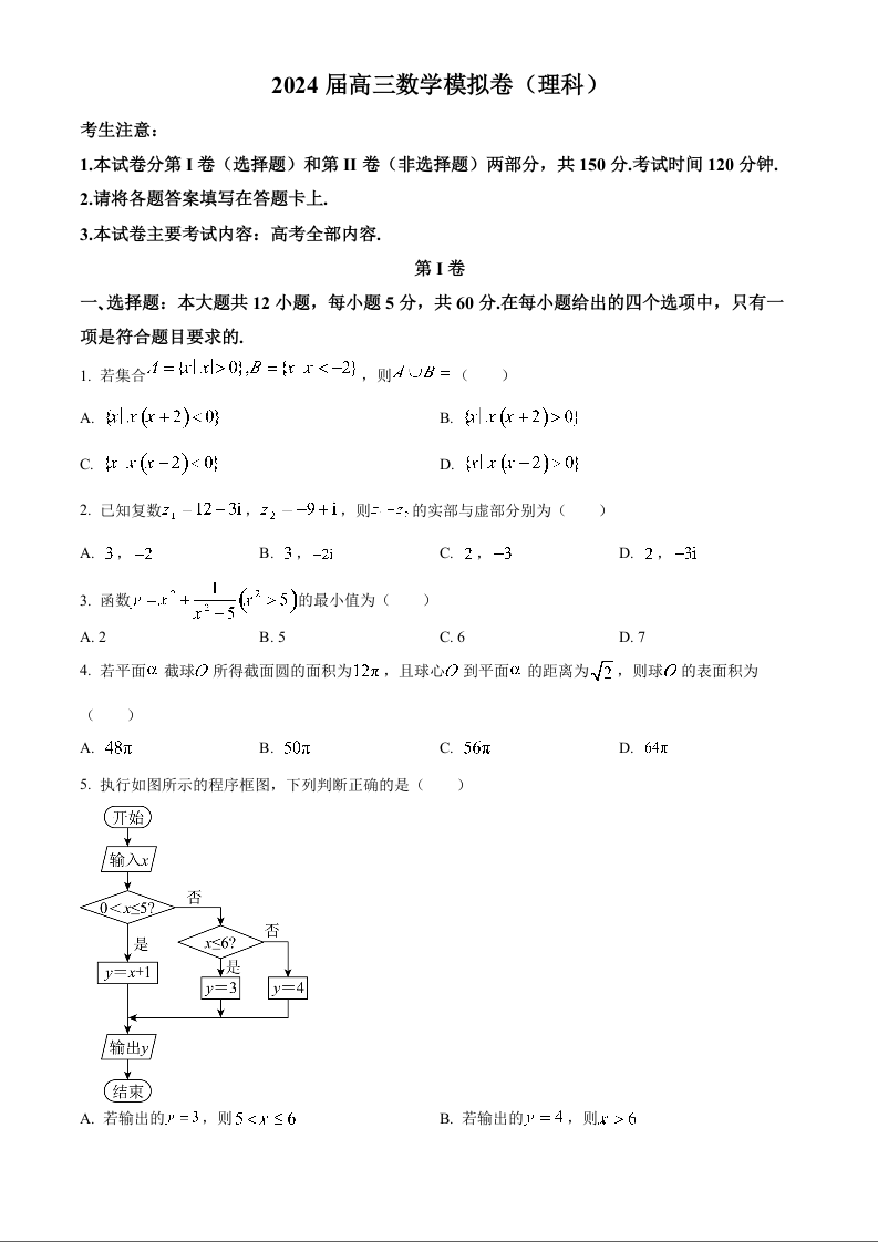 陕西省西安市长安区教育片区2024届高三上学期模拟考试理科数学(原卷版)