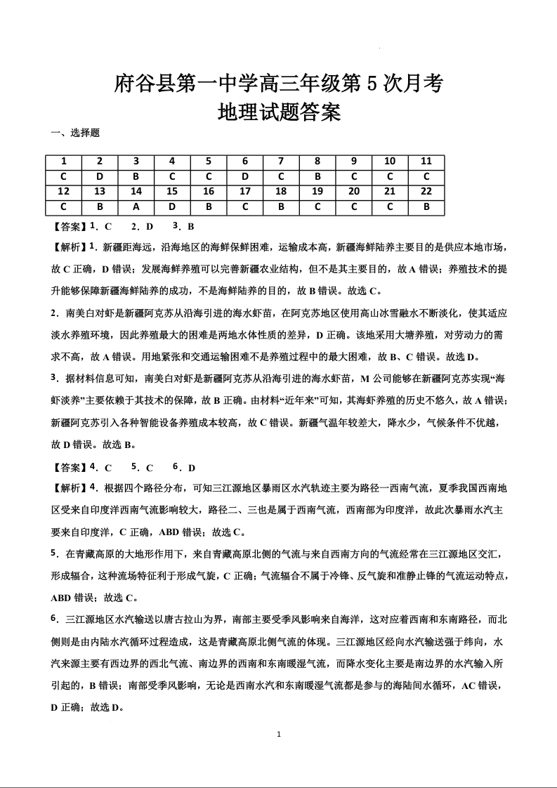 陕西省榆林市府谷县第一中学2023-2024学年高三上学期12月月考 地理答案