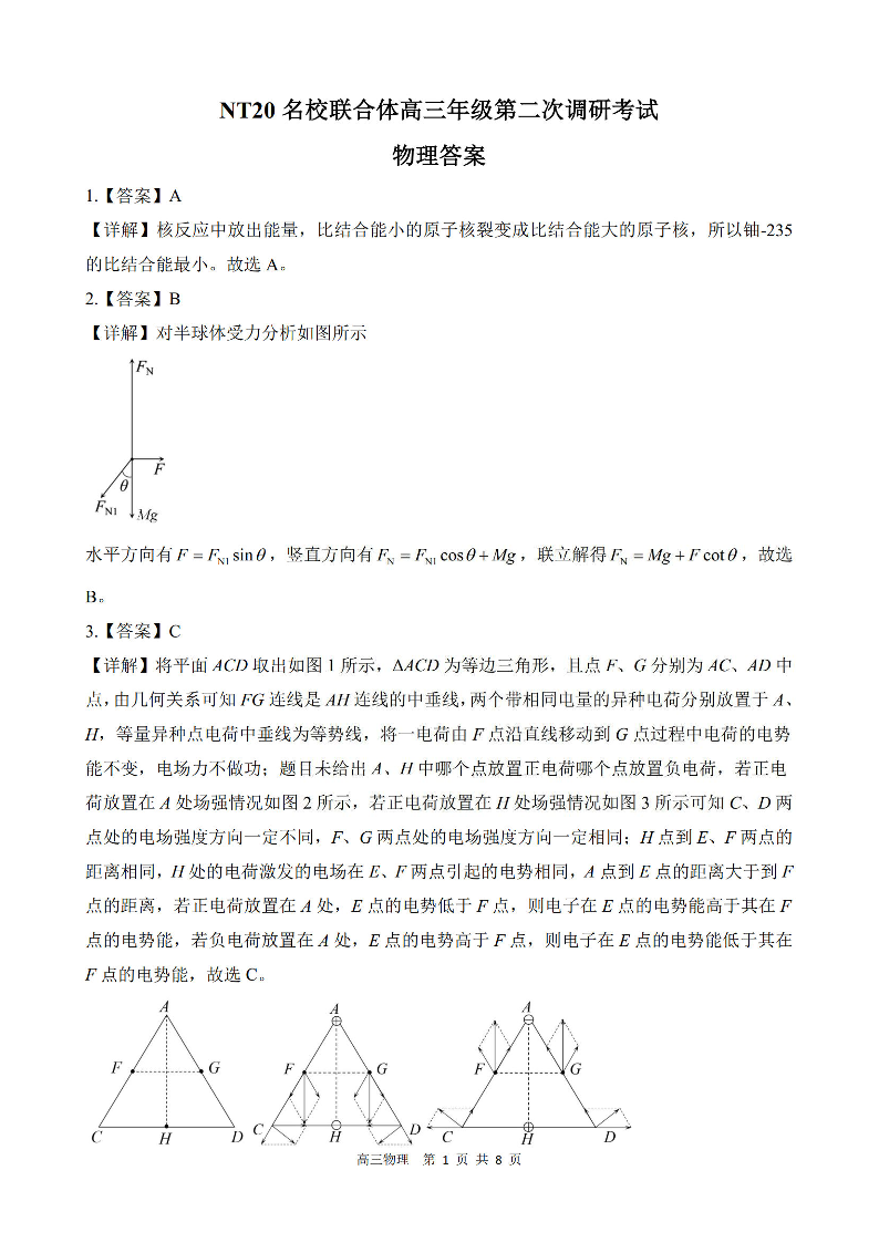 河北省NT20名校联合体2025届高三年级第二次调研考试物理答案