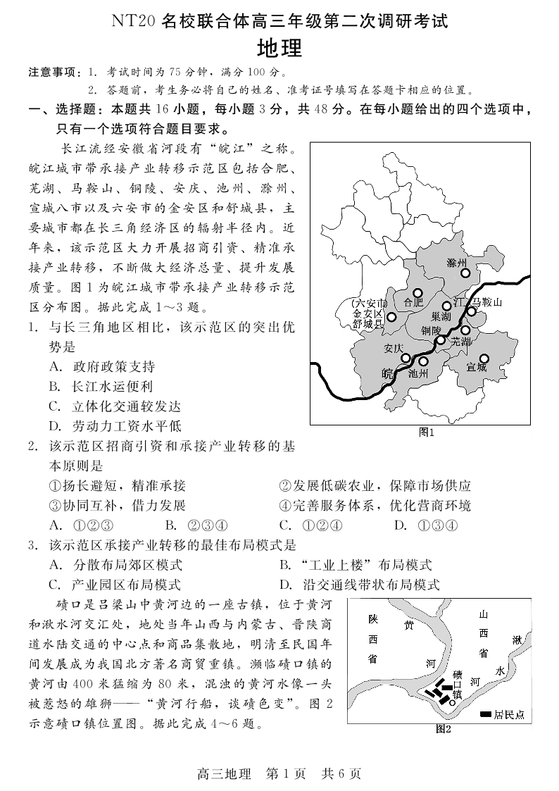 河北省NT20名校联合体2025届高三年级第二次调研考试地理