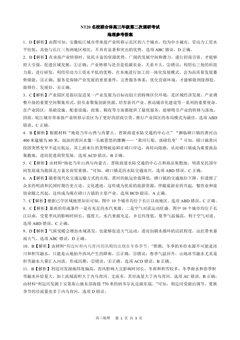 河北省NT20名校联合体2025届高三年级第二次调研考试地理答案