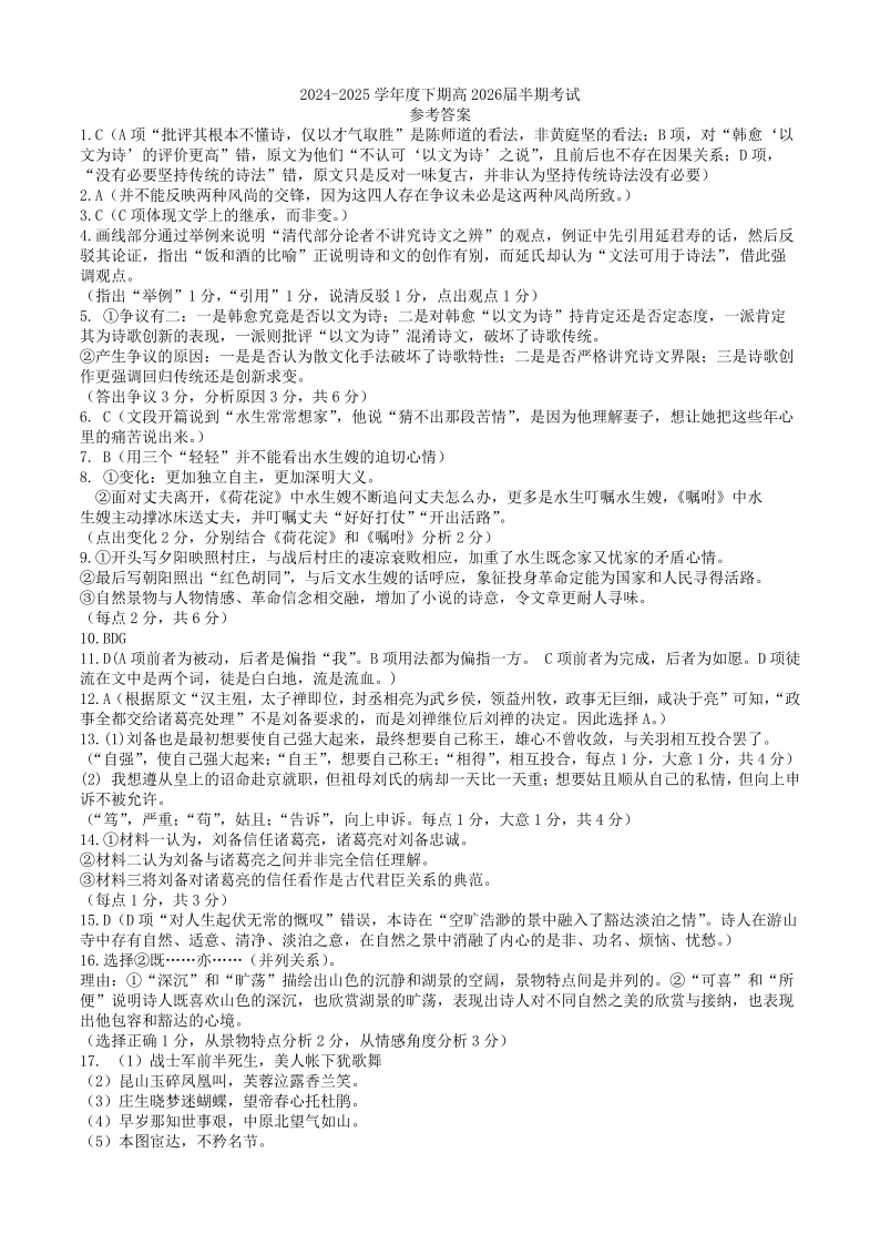 四川省成都市第七中学2024-2025学年下期高二半期考试语文答案