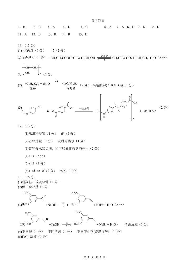 四川省成都市第七中学2024-2025学年下期高二半期考试化学答案