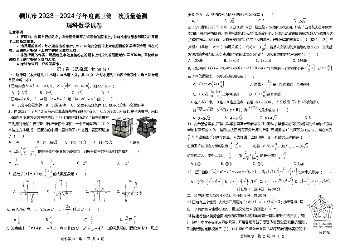 铜川市2023—2024学年度高三第一次模拟考试 理数