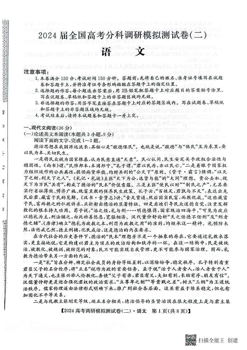 陕西省咸阳市部分高中2024届高三调研模拟测试(二)语文