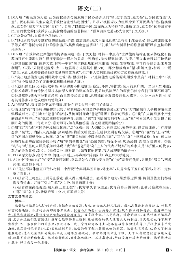 陕西省咸阳市部分高中2024届高三调研模拟测试(二)语文答案