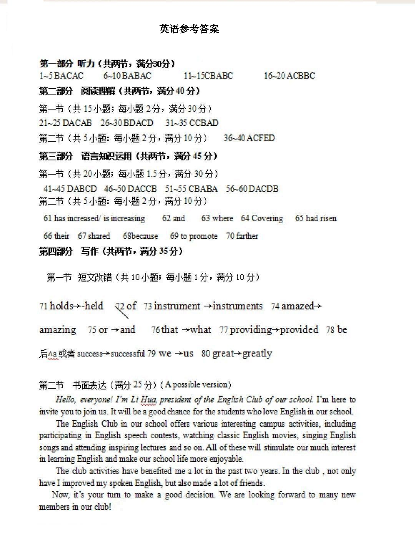 陕西省宝鸡市2024届高三下学期高考模拟检测(二)英语答案