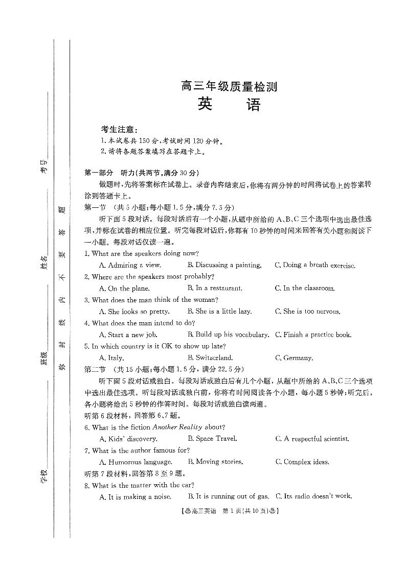 陕西省2024届高三下学期教学质量检测(二)英语