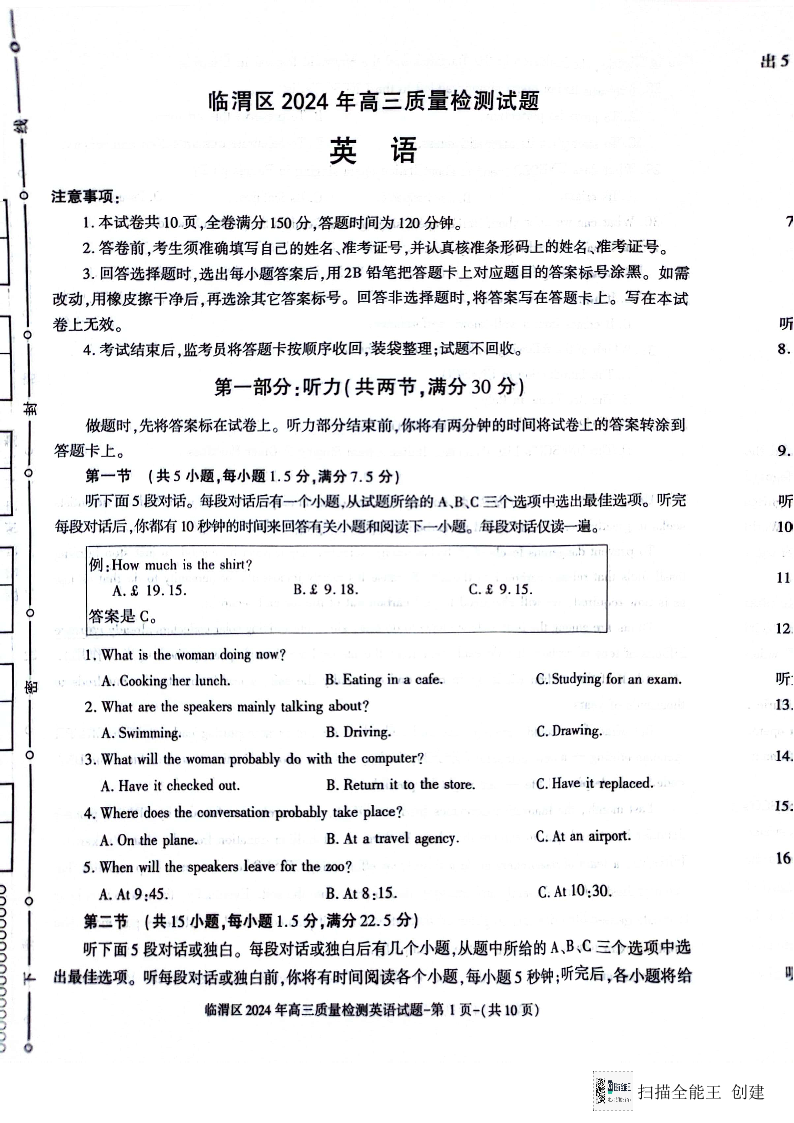 陕西省渭南市临渭区2024届高三下学期三模英语