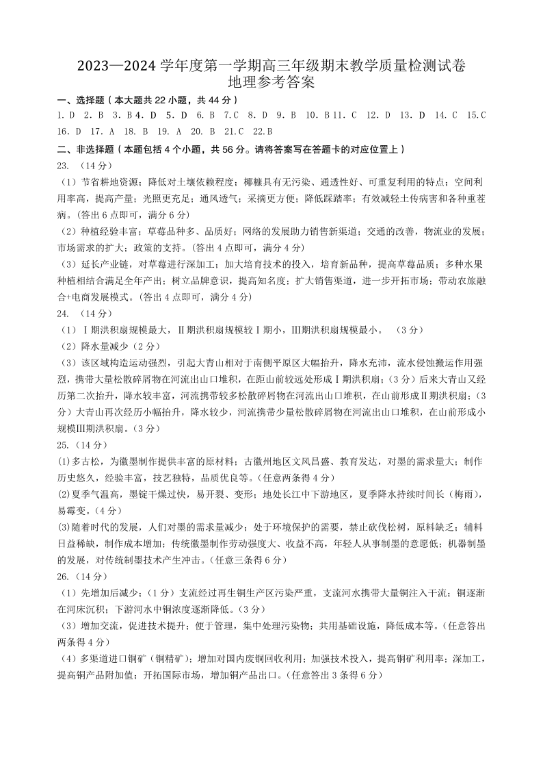 内蒙古包头市2023-2024学年高三上学期开学调研考试地理答案