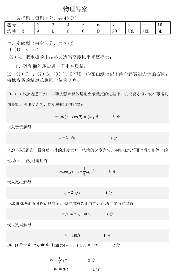 内蒙古呼和浩特市2024届高三第一次质量监测测物理答案