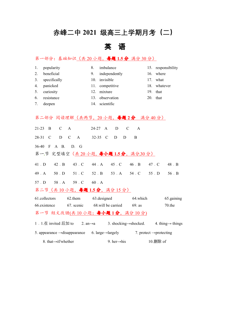 内蒙古赤峰二中2023-2024学年高三上学期10月月考英语答案