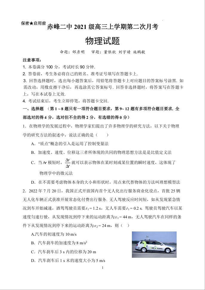 内蒙古赤峰二中2023-2024学年高三上学期10月月考物理