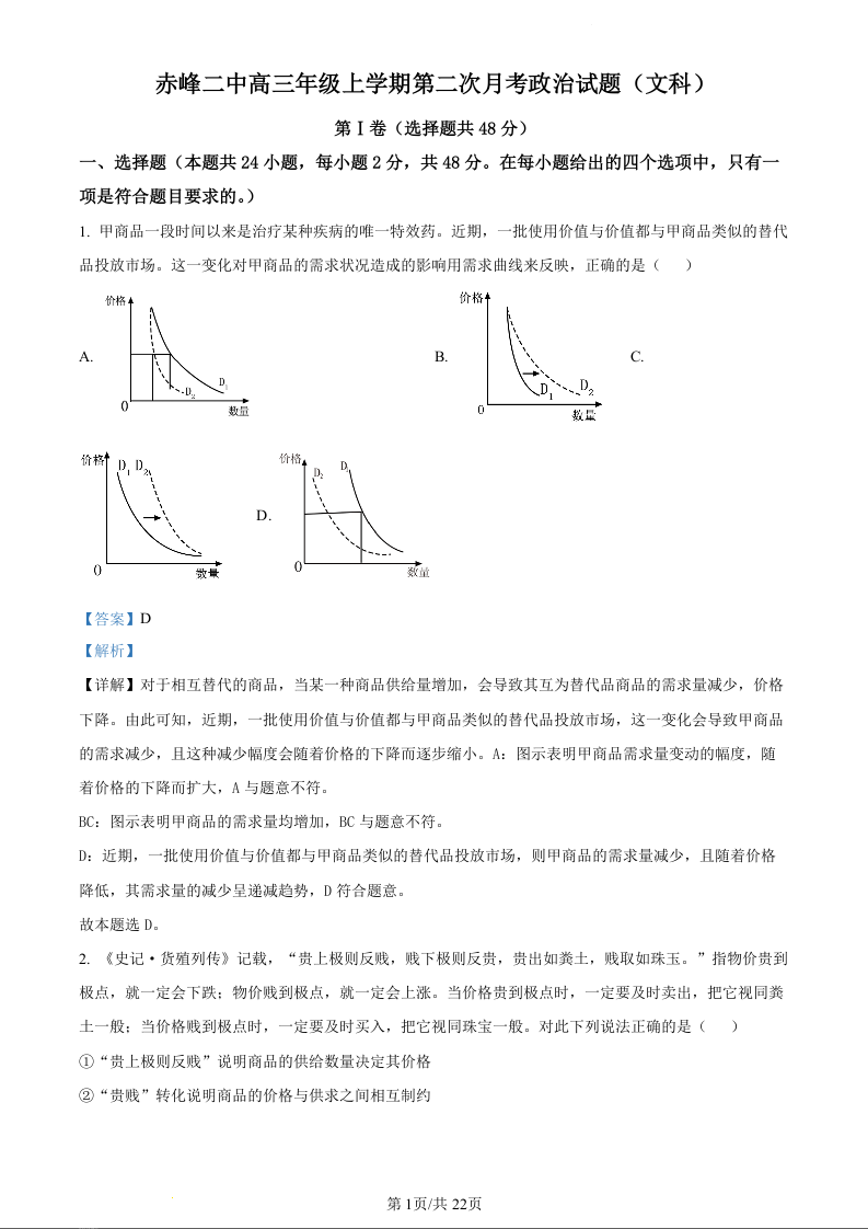 内蒙古赤峰二中2023-2024学年高三上学期10月月考政治试题(精品解析版)