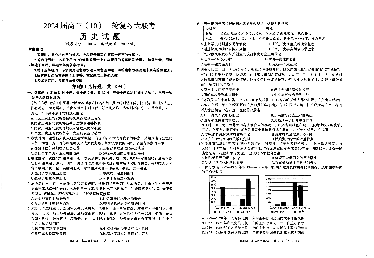 内蒙古赤峰市2023-2024学年高三上学期10月一轮复习联考 历史