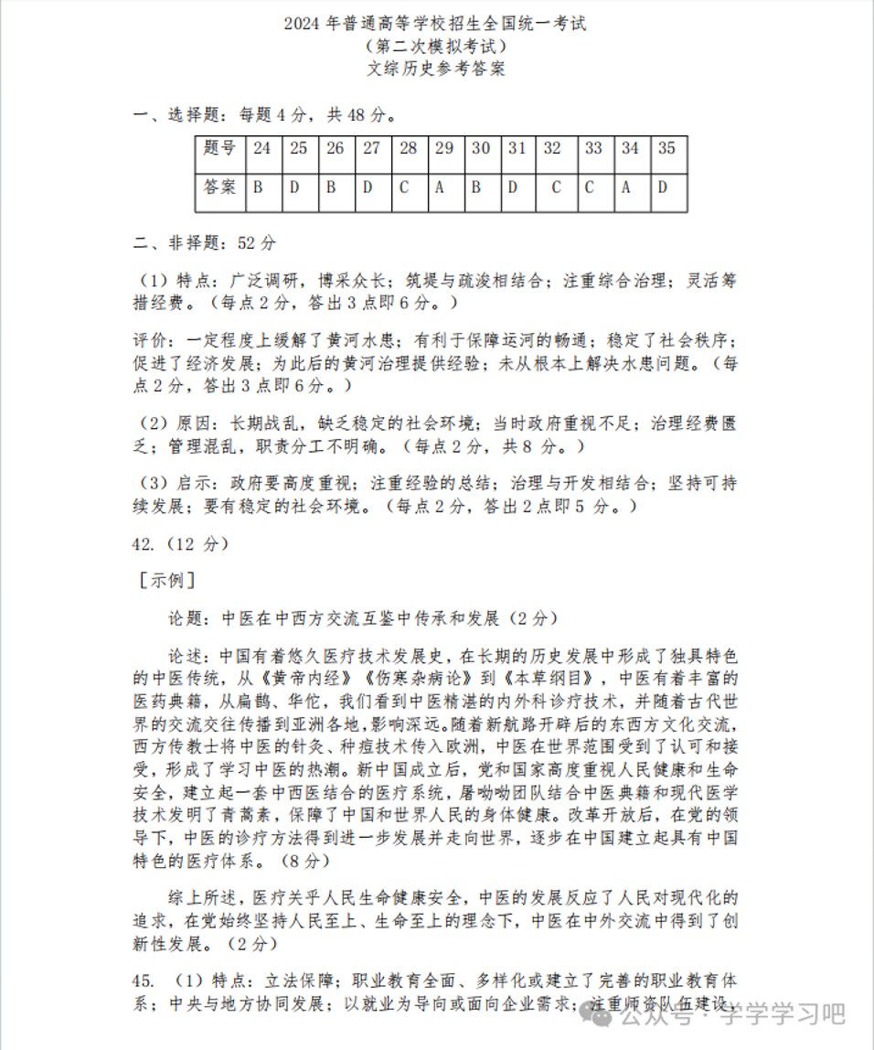 2024届内蒙古自治区包头市高三下学期二模文科综合答案