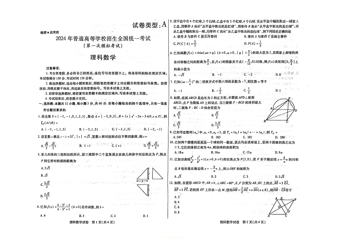 2024届内蒙古自治区包头市高三下学期一模数学(理)