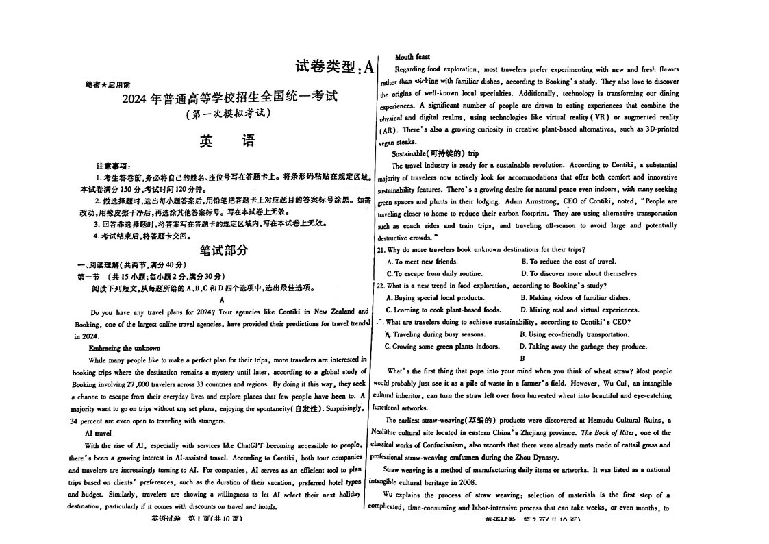 2024届内蒙古自治区包头市高三下学期一模英语