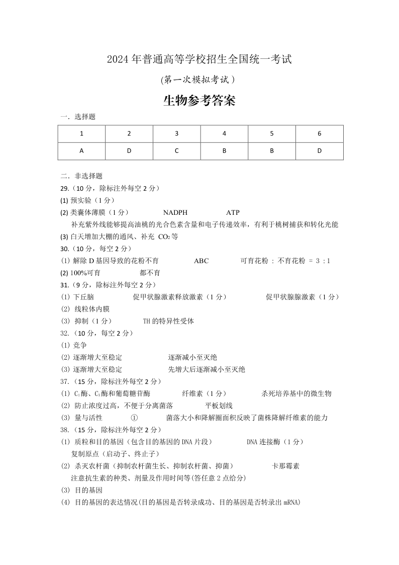 2024届内蒙古自治区包头市高三下学期一模生物答案
