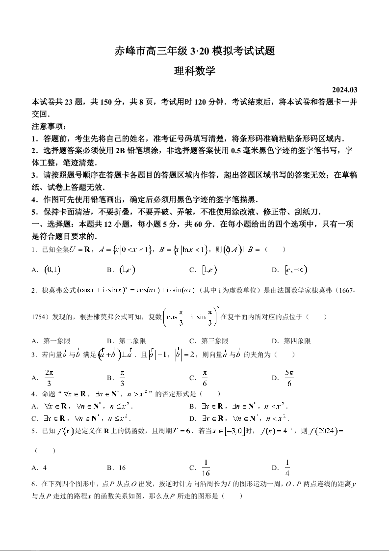 内蒙古赤峰市2024届高三下学期3·20模拟考试理科数学+答案